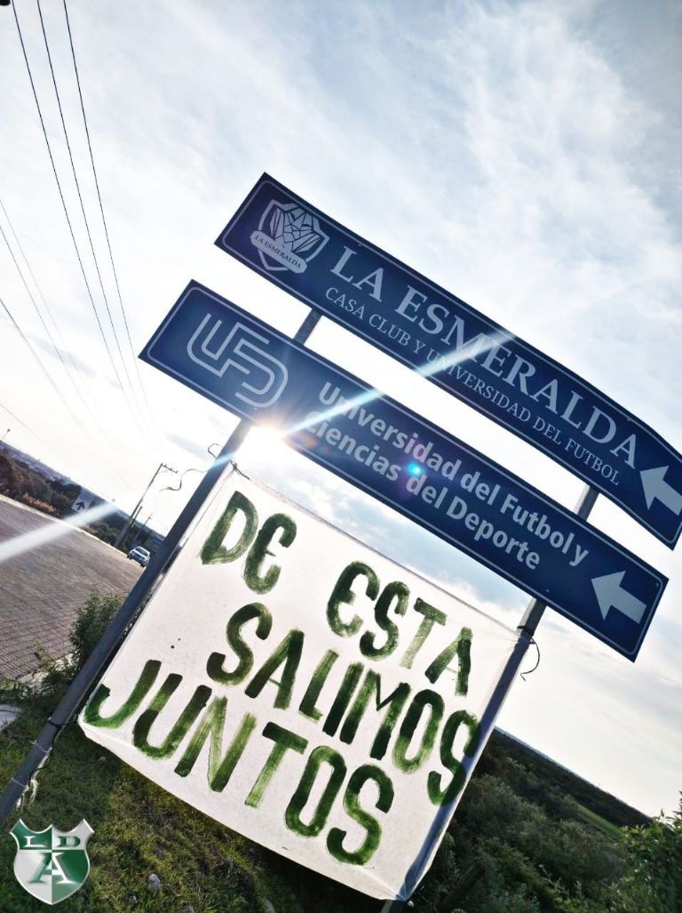 Este viernes, el camino hacia La Esmeralda, la Casa Club del León, amaneció con varias mantas con mensajes de apoyo para los verdiblancos.