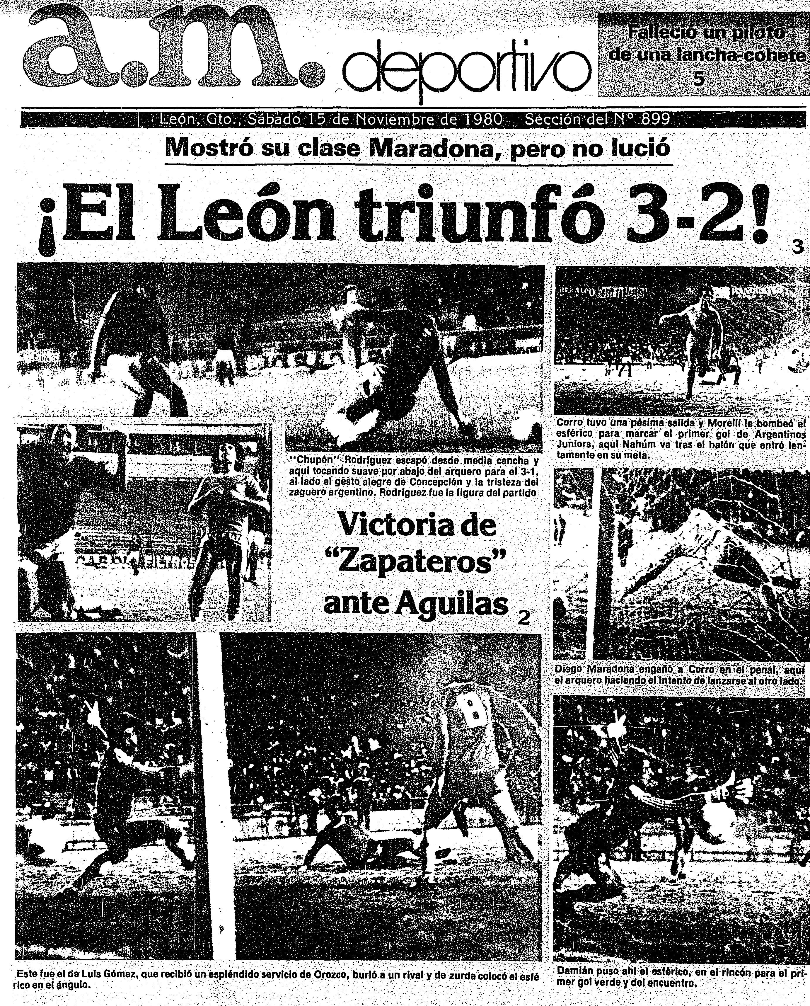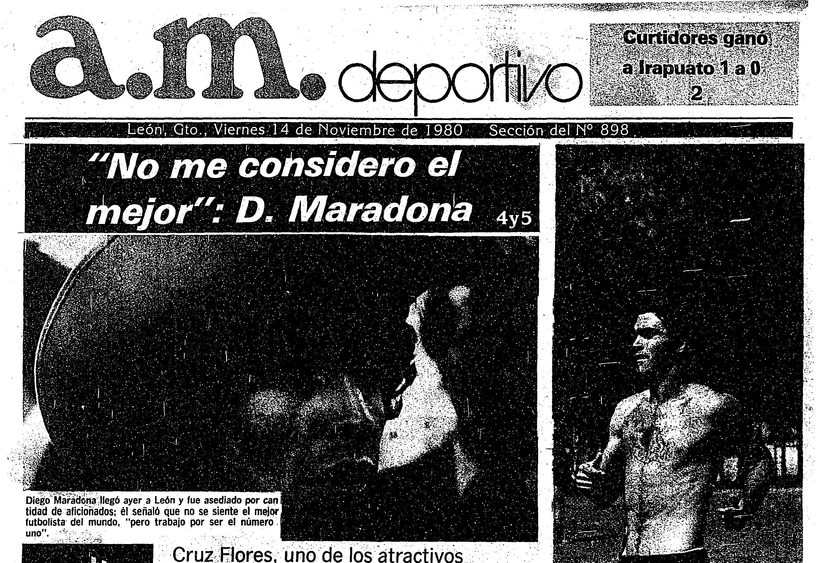 León.- “Que no le cuenten, vea a Maradona en persona, hoy en el Estadio León”, mencionaba aquel anuncio impreso en el periódico AM, el 14 de noviembre de 1980.