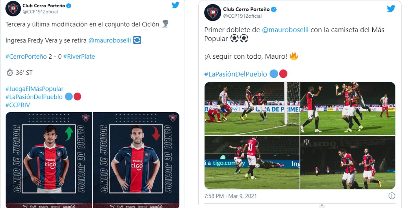 El segundo gol de Boselli llegó al minuto 72″, cuando en un servicio al área, el delantero argentino controló el balón, hizo recorte y entre tres jugadores marcó el 2-0 para Cerro Porteño.
