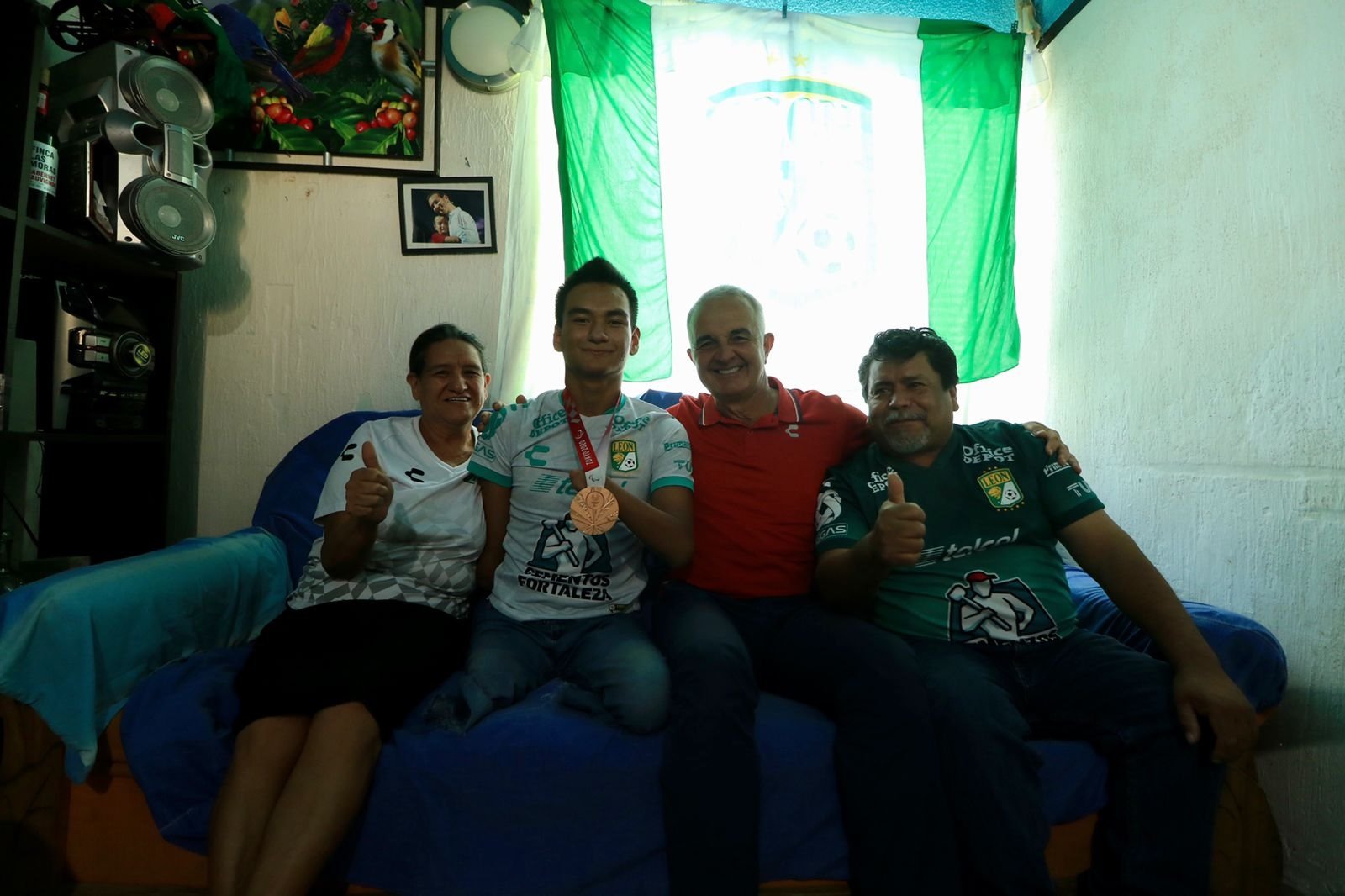 Acompañado de su señora esposa y todos uniformados con las nuevas playeras esmeraldas, compartieron lo duro que ha sido el camino para que Ángel pueda cumplir sus sueños: