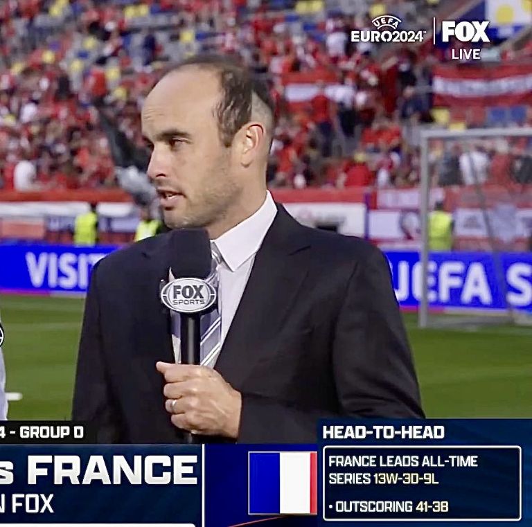 Todo normal hasta ahora, con una figura internacional dando sus comentarios sobre el duelo Austria Vs Francia, pero la apariencia de Landon Donovan sorprendió a todos.