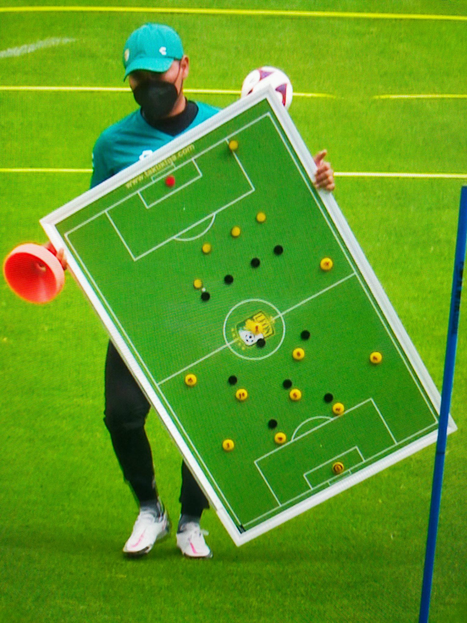 Hace días se filtró la imagen del pizarrón que ha utilizado Ariel Holan con los Esmeraldas del Club León. En este, se notaba claramente la distribución de las fichas amarillas que delineaban un parado táctico de 4-3-3.