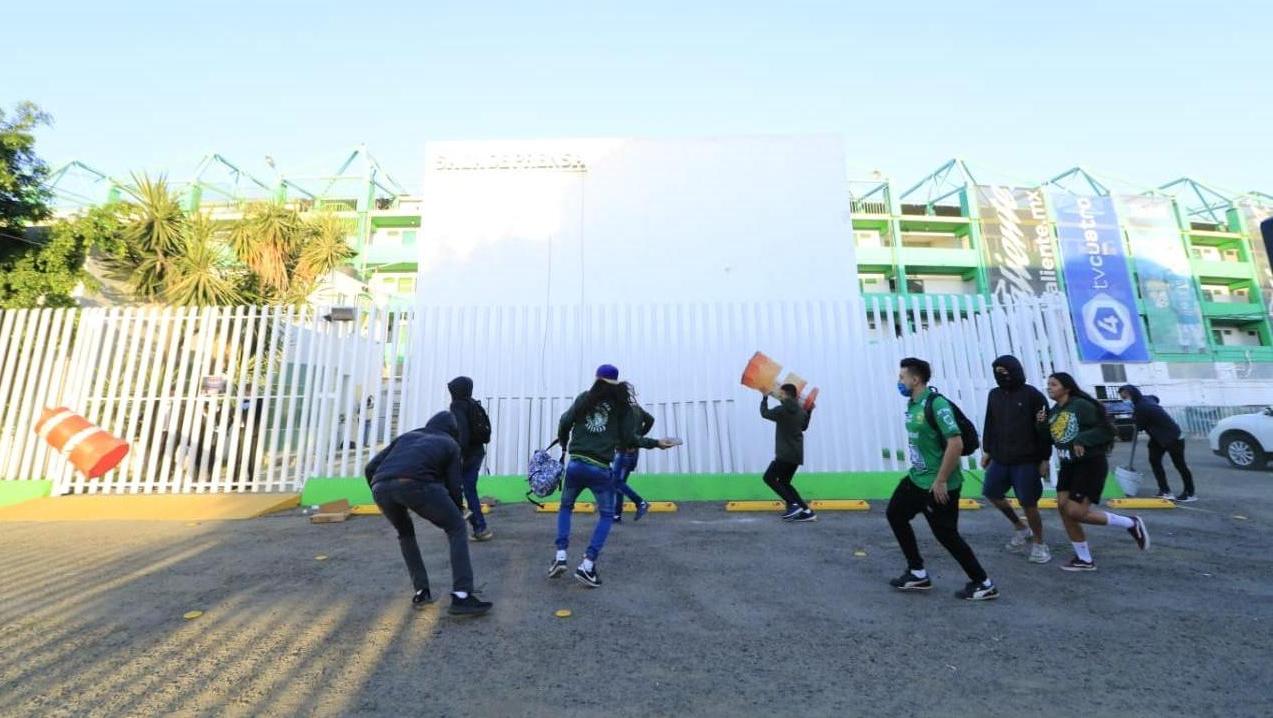 Los aficionados gritaron mensajes contra Roberto Zermeño y al llegar a las oficinas, lanzaron piedras, botes de basura y palos.