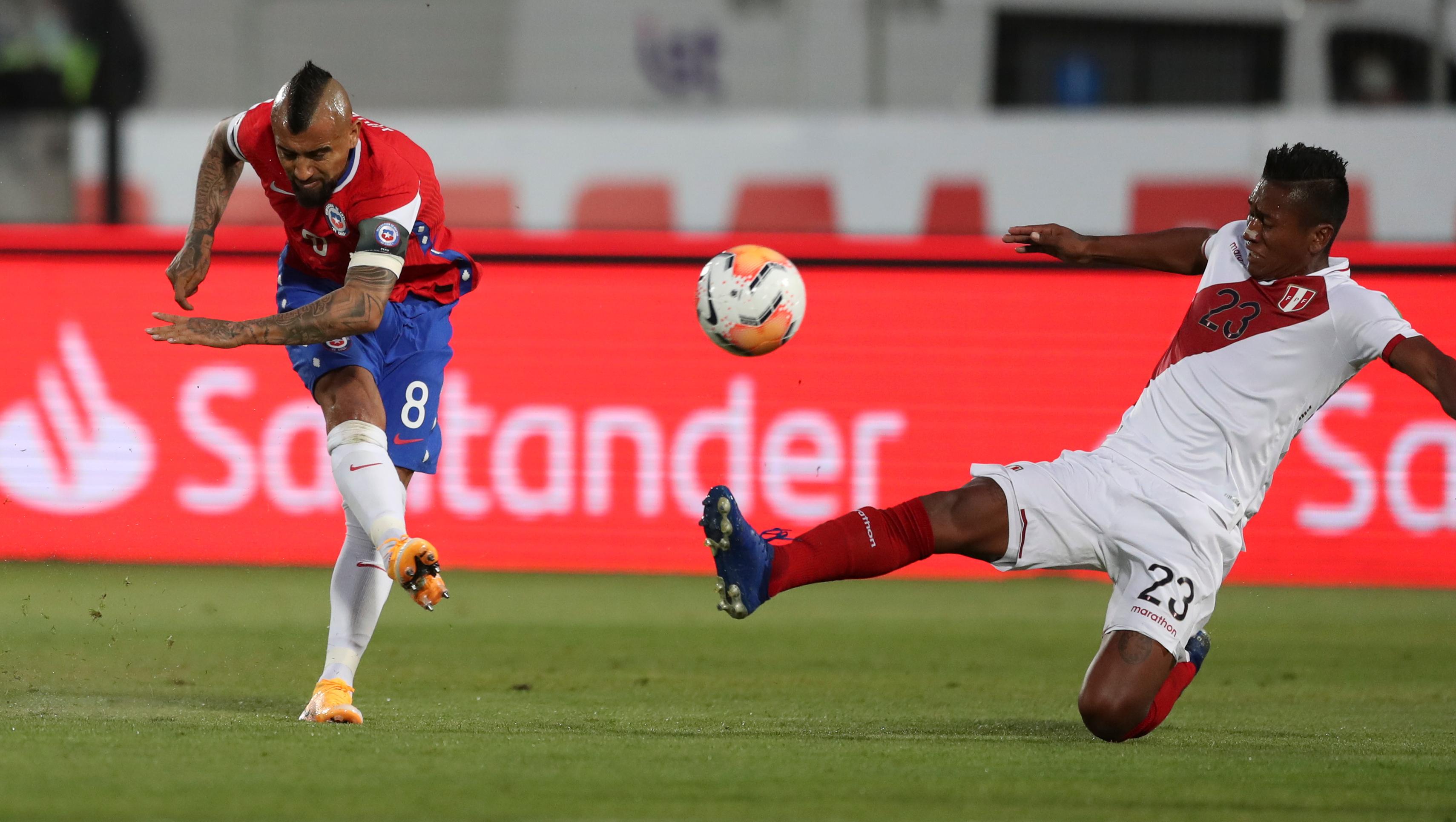 De hecho, la primera anotación chilena surgió de los botines de ambos. Al minuto 20, Meneses controló el balón en la izquierda, amagó a un defensa y cedió hacia el centro, donde Vidal se perfiló y disparó para hacer un golazo, venciendo la estirada de Pedro Gallese.
