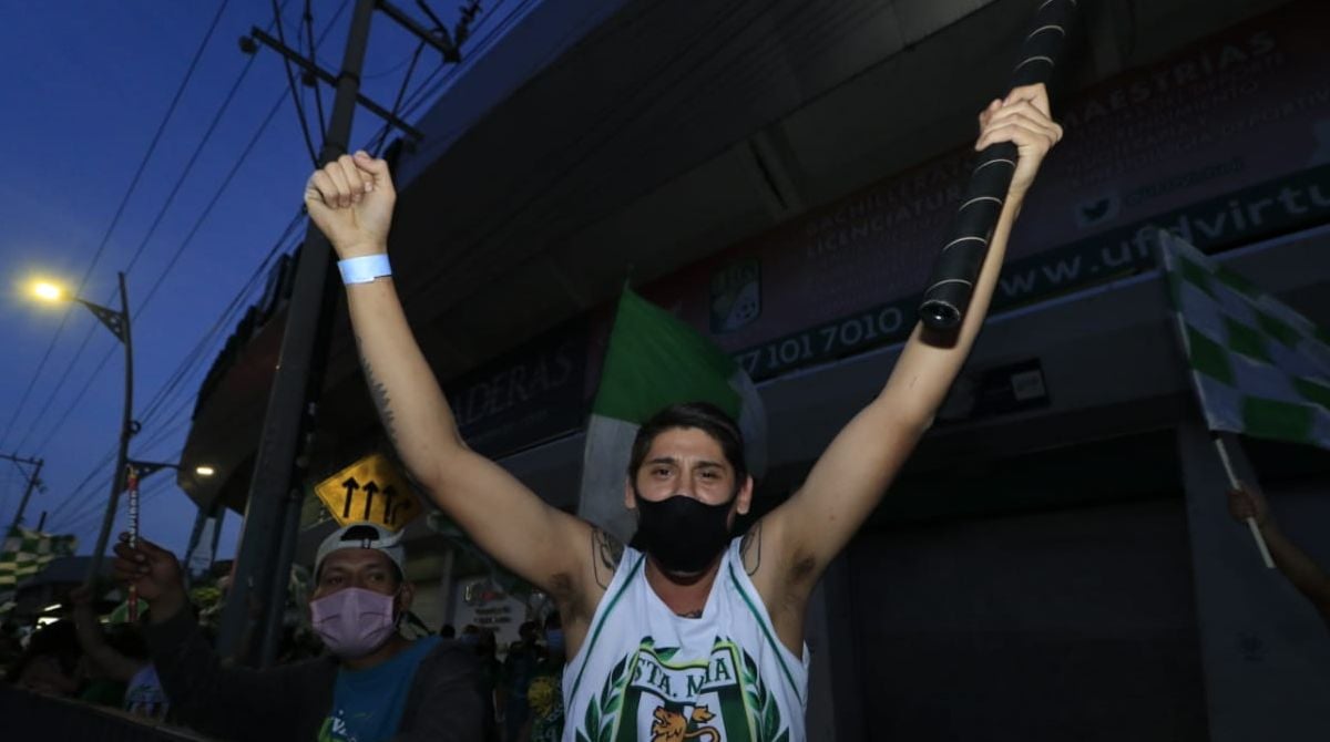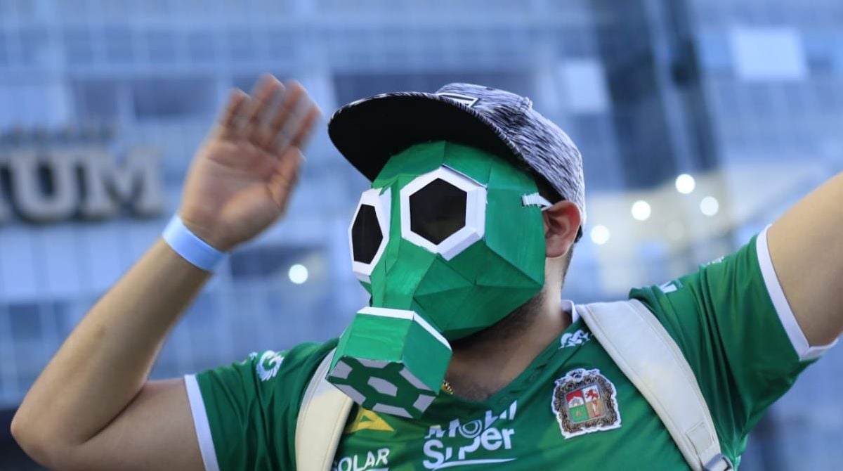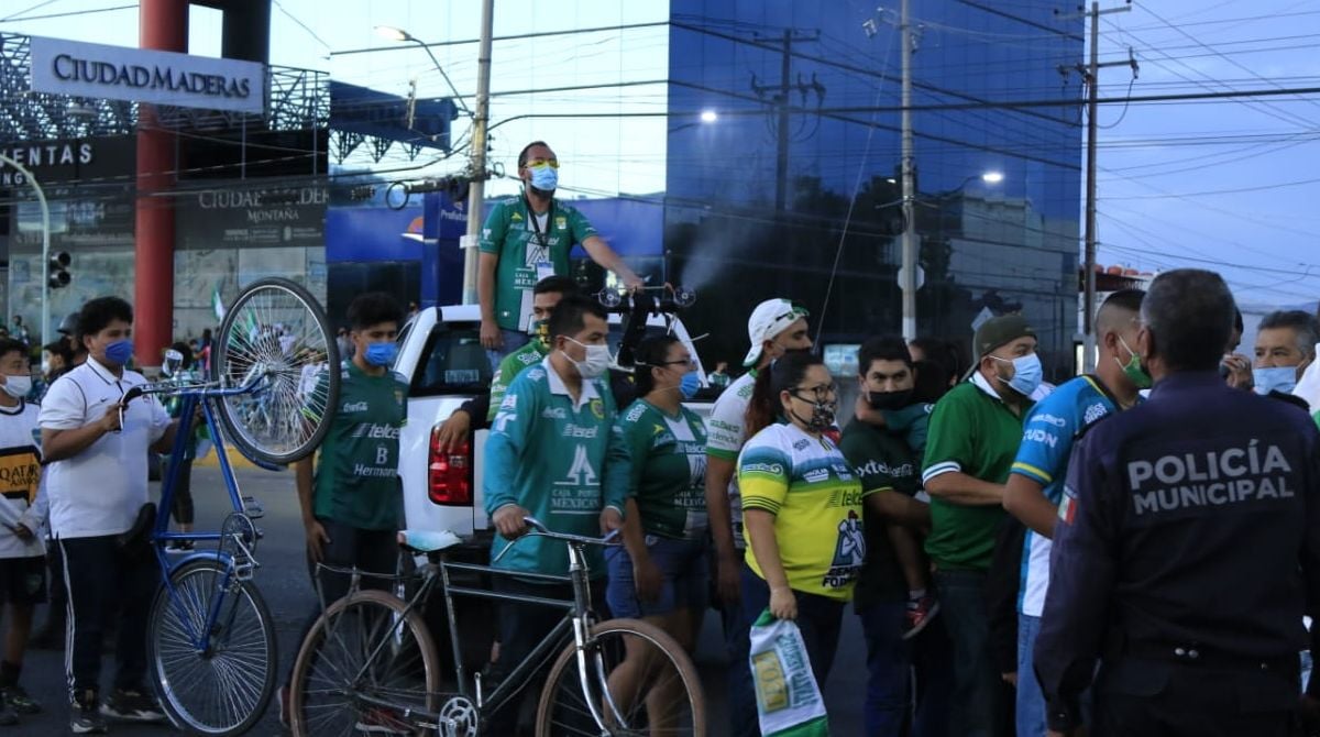 Cientos de aficionados esmeraldas se formaron para ser desinfectados, con el fin de poder entrar a la sección donde esperaron el camión del equipo, que llegó al Estadio León, donde se definirá al campeón del torneo Guard1anes 2020.