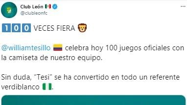 El triunfo ante Pumas fue más allá de un logro colectivo y alegró también a algunos en lo individual, específicamente a William Tesillo, quien sumó un duelo más a su cuenta personal y llegó a 100 partidos con la camiseta de los Verdes.