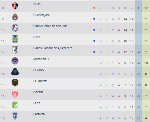Equipos como Mazatlán, Querétaro, Tigres, Atlético de San Luis y Chivas, ya cuentan con diez o más unidades y de sumar en sus próximos duelos (combinado con dos derrotas para los verdes) prácticamente impedirían que los dirigidos por Ignacio Ambriz se metan a clasificación.