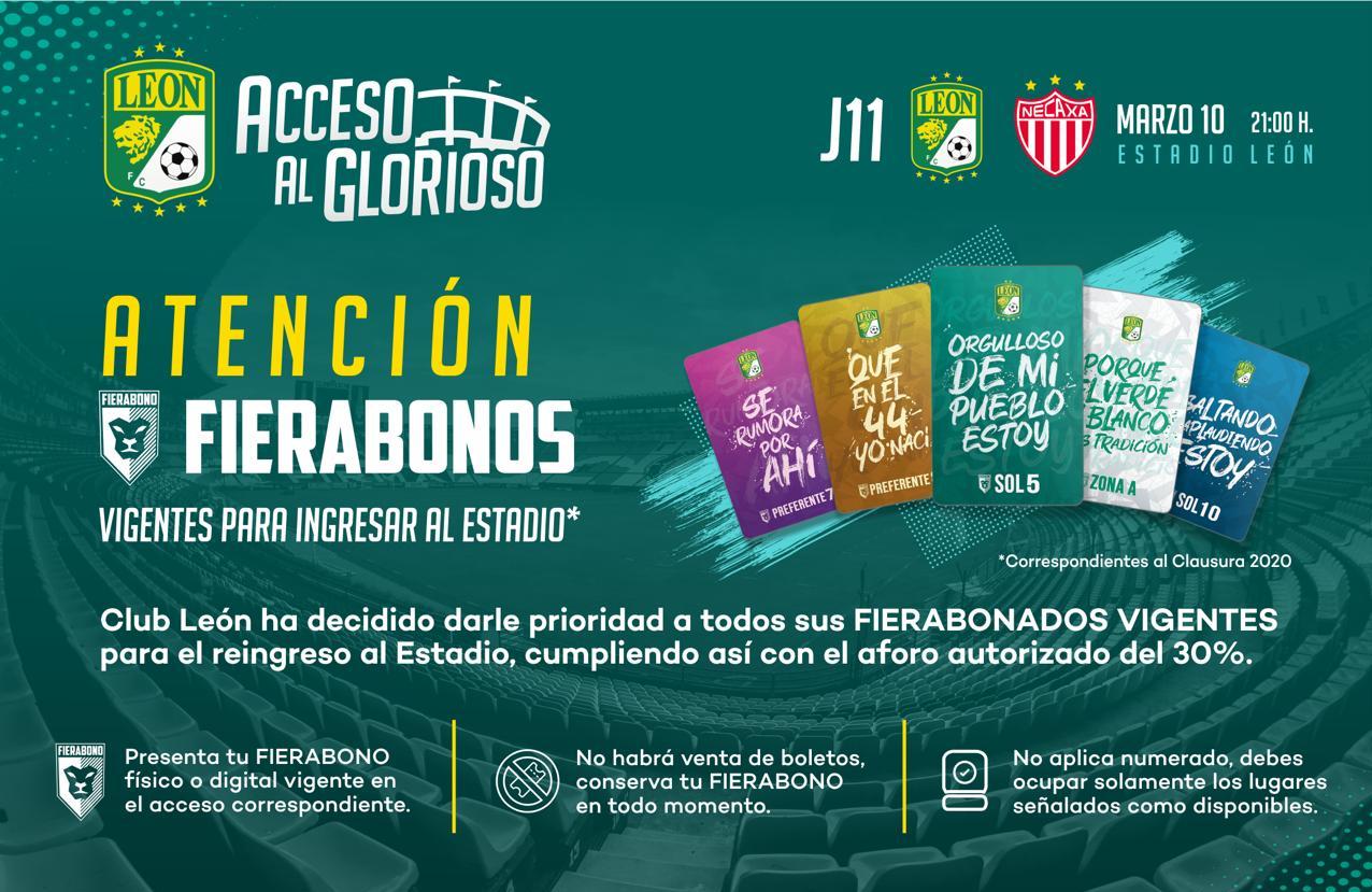 Esta decisión se reabrir se da un año después del último partido que los Verdes compartieron con su afición, casualmente, también contra Necaxa en la primera mitad del Clausura 2020.