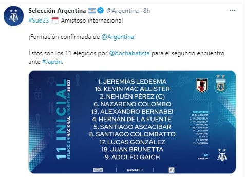 Por segundo duelo consecutivo, Santiago Colombatto fue elegido por Fernando Batista para tener minutos ante el combinado nipón que aprovechó las fallas del cuadro argentino y pudo ponerse en ventaja en el tanteador antes de que finalizaran los primeros 45 minutos.