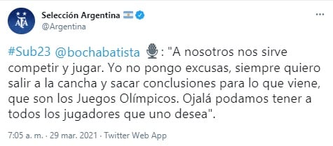En total, el mediocampista argentino jugó 90 minutos en el primer partido ante Japón, y luego 45 en la derrota por 3-0, esto luego de los goles de Hayashi y el doblete de Kou Itakura.