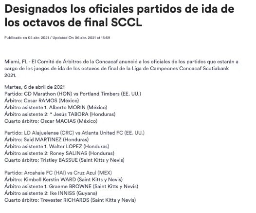 César Ramos será el único árbitro mexicano que tenga actividad en los partidos de ida correspondientes a los octavos de final de la Concachampions. El mundialista, sin embargo, se encargará del duelo que protagonizarán el Marathon de Honduras y el Portland Timbers.