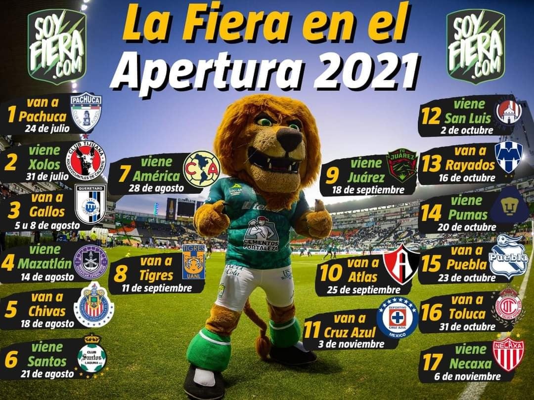 El certamen arrancará para la Fiera el próximo 24 de julio cuando visiten a los “Tuzos” del Pachuca, pero su primer momento apretado se producirá a partir del enfrentamiento ante Mazatlán el 14 de agosto en el Estadio León.