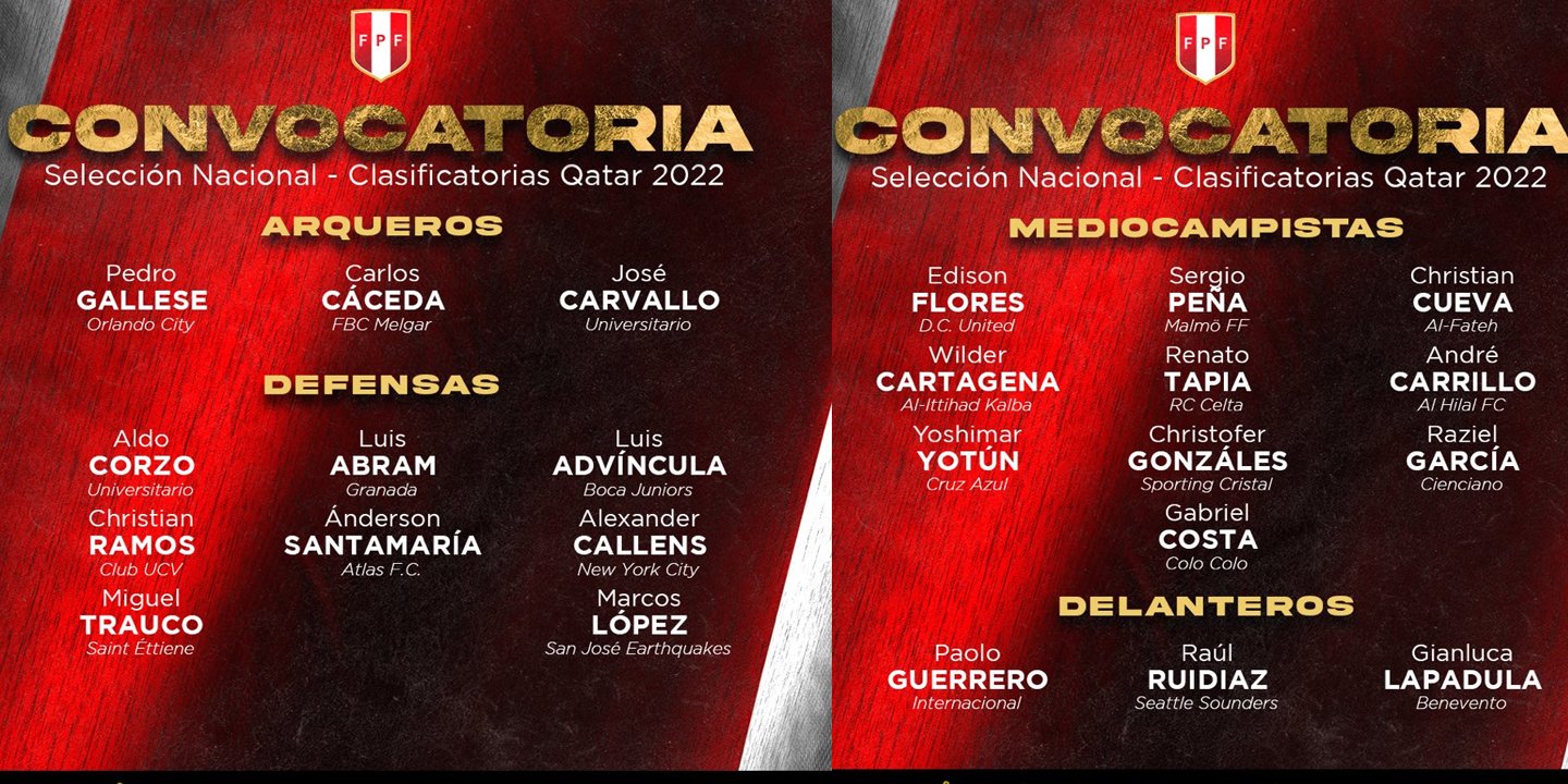 Convocados con Selección de Perú para eliminatoria a Catar 2022