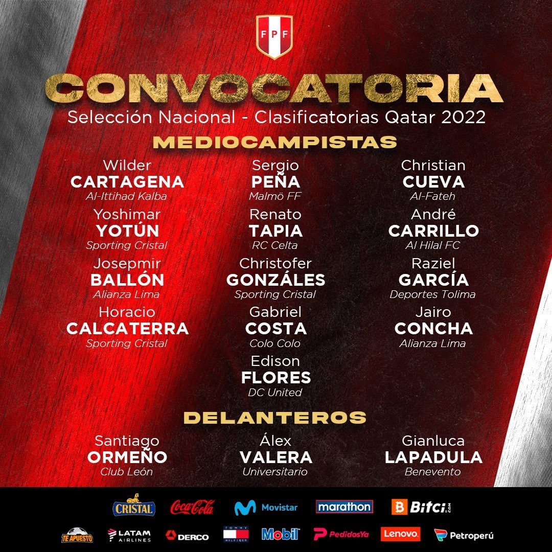 Se trata de la última fecha doble de la clasificación rumbo al Mundial de Qatar 2022, partidos en donde la selección inca se medirá a sus similares de Uruguay y Paraguay los próximos 24 y 29 de marzo.