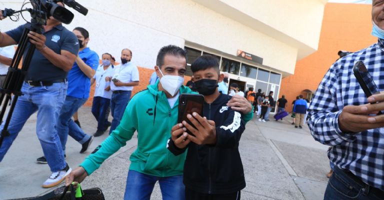 “Ya estamos aquí, contentos, casi no dormimos, venimos desde la una de la mañana en la Ciudad de México, pero ya estamos aquí, con la ilusión” dijo mientras caminaba de la puerta de arribos hacía la camioneta que lo llevaría a la ciudad.