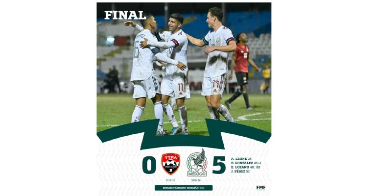 Honduras.- Con Fidel Ambriz como titular, la Selección Mexicana Sub-20 venció por marcador de 5-0 a su similar de Trinidad y Tobago en la cancha del Estadio Morazán, que finalizó enlodada.