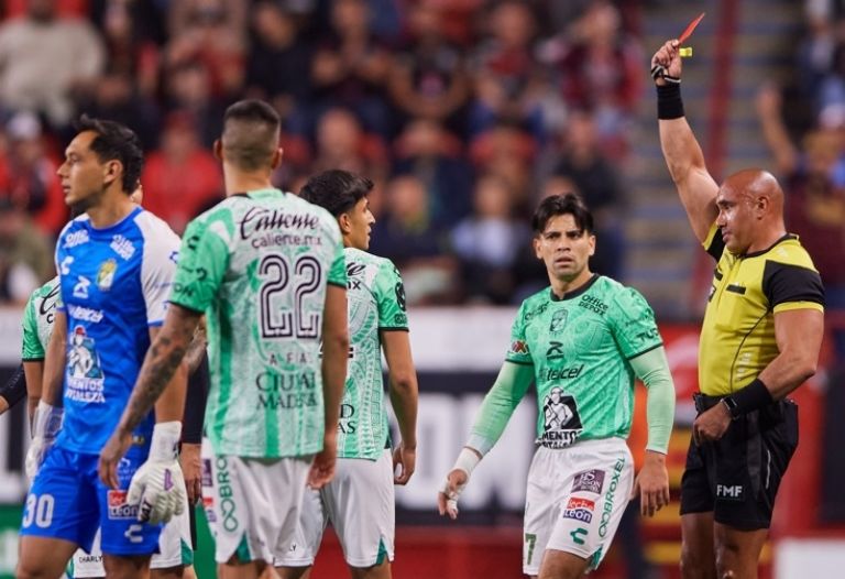 El acto tuvo que ser revisado en el VAR por parte de colegiado Edgar Allan Morales, quien al checarlo en cámara lenta, terminó por irse con la fácil y echar al jugador del León con todo y que el verdiblanco no tenía intención de dañar al de Xolos e incluso había hecho en primera por el esférico.