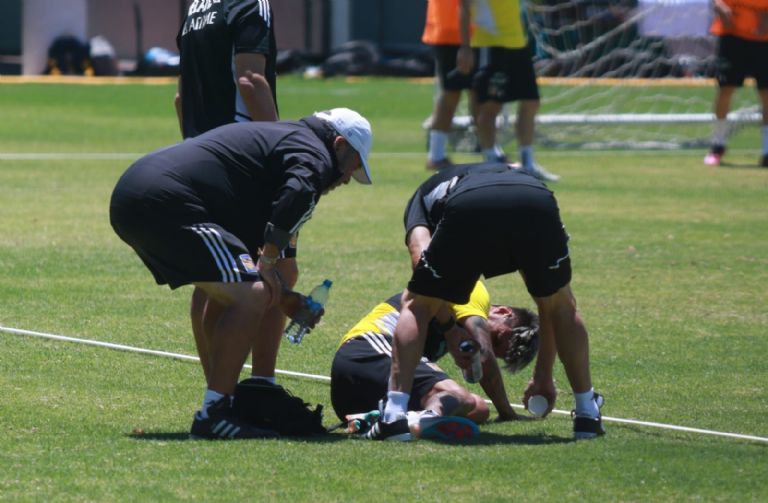 Un aparente choque durante el interescuadras derivó en que el jugador se doliera y fuera atendido por el cuerpo médico.