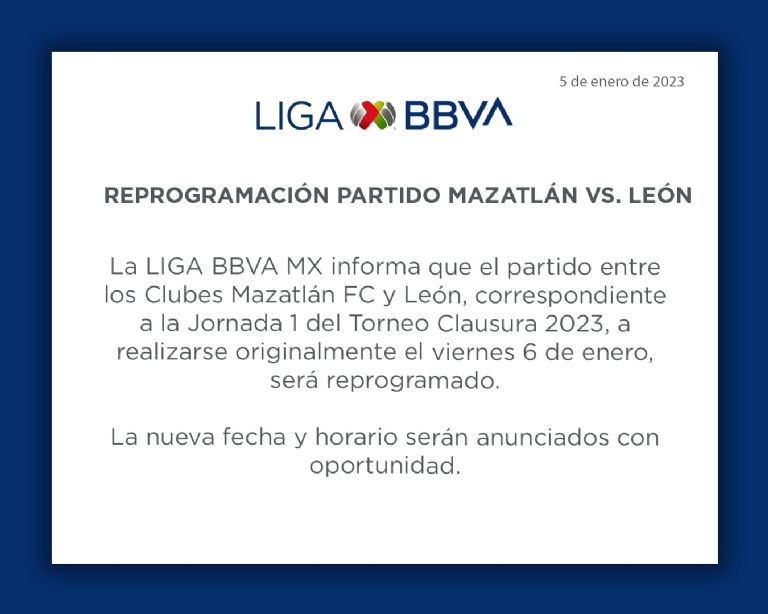 Más temprano, SoyFiera cuestionó al Club León sobre el tema y se informó que están en constante comunicación con la Liga MX y esperaban una decisión, con base en los informes del Club Mazatlán y de las autoridades estatales y federales.