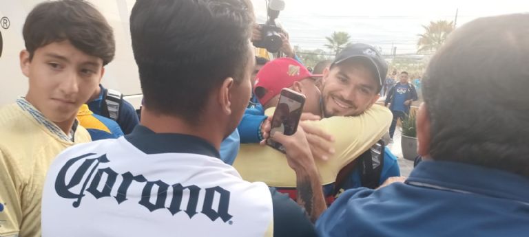 A pesar de ser pocos los seguidores azulcremas que se dieron cita, algunos lograron evadir los cercos de seguridad hasta colocarse a un costado del transporte en donde pudieron llamar la atención de Henry Martin quien amablemente aceptó tomarse fotos y firmar algunas playeras.