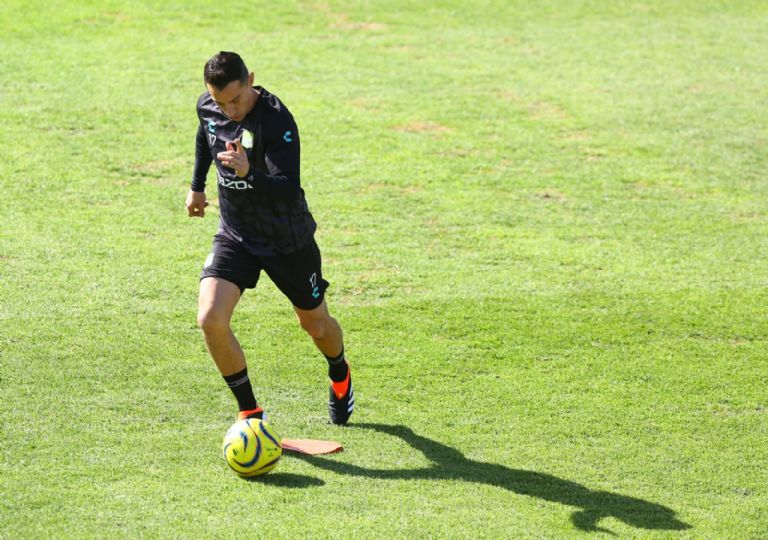 Ya en campo y siempre sonriente, se incorporó sin mayores problemas y atendió cada una de las instrucciones brindadas por parte del cuerpo técnico de Jorge Bava, quien de acuerdo a sus propias declaraciones dadas esta misma semana, vio una ligera posibilidad de que el 17 vea acción este sábado ante Santos Laguna.