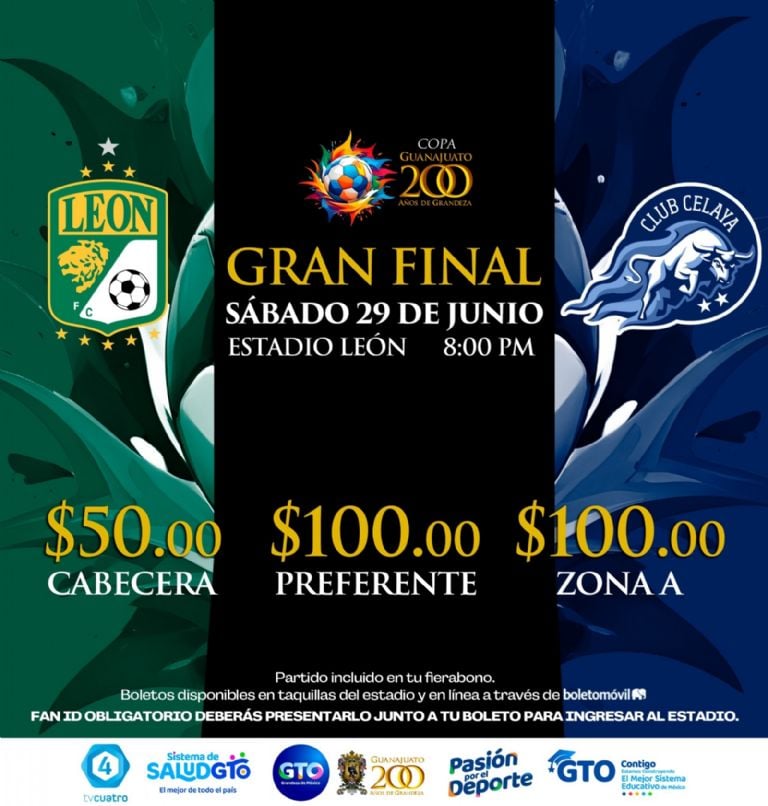 Así, la final de la Copa Guanajuato se disputará este sábado a las 8 de la noche en el Estadio León, con transmisión en vivo por TV a través de TV4, señal local y que también emite en redes e internet.